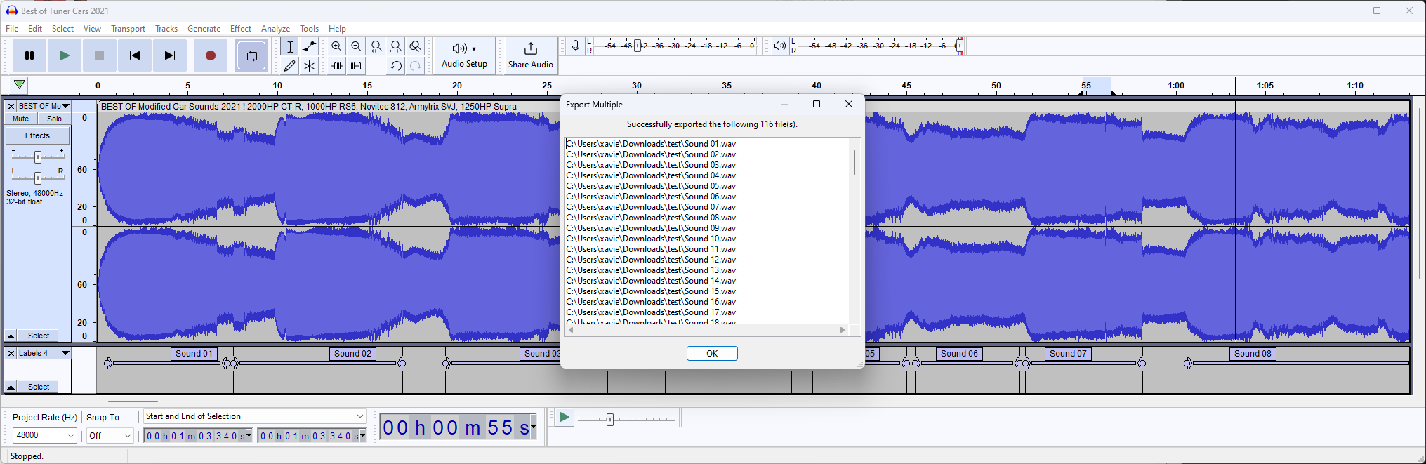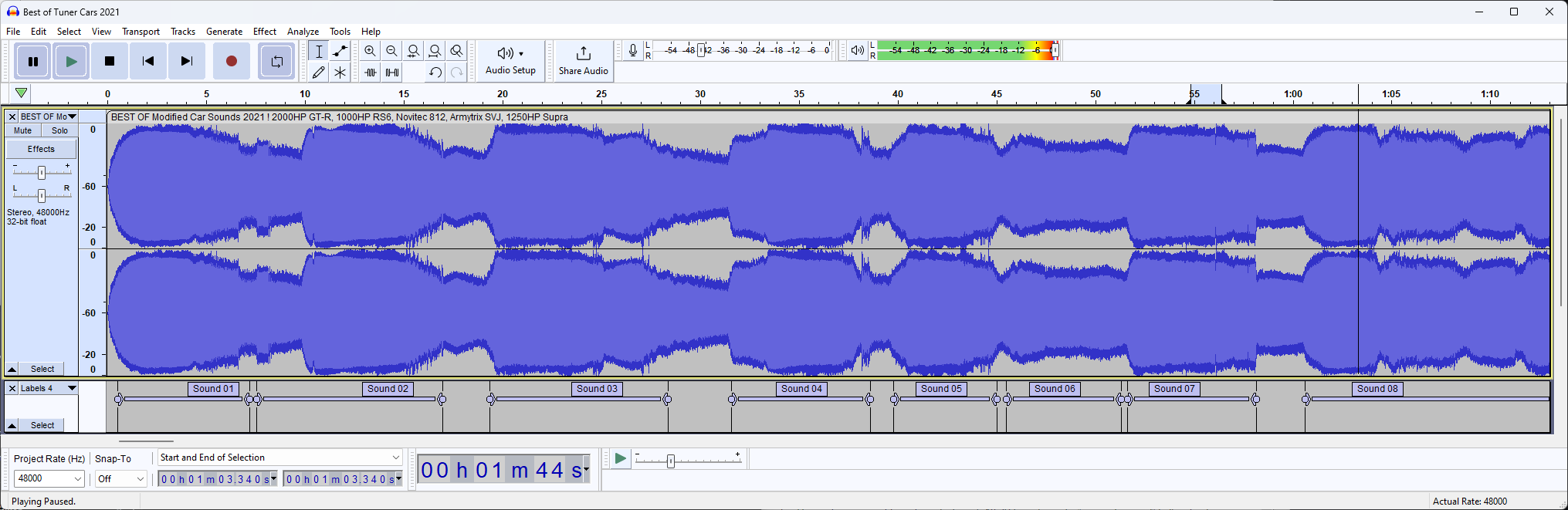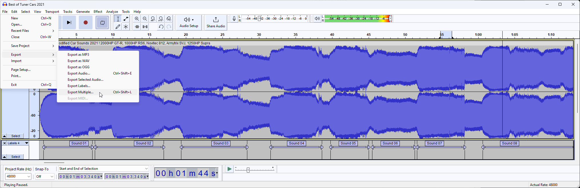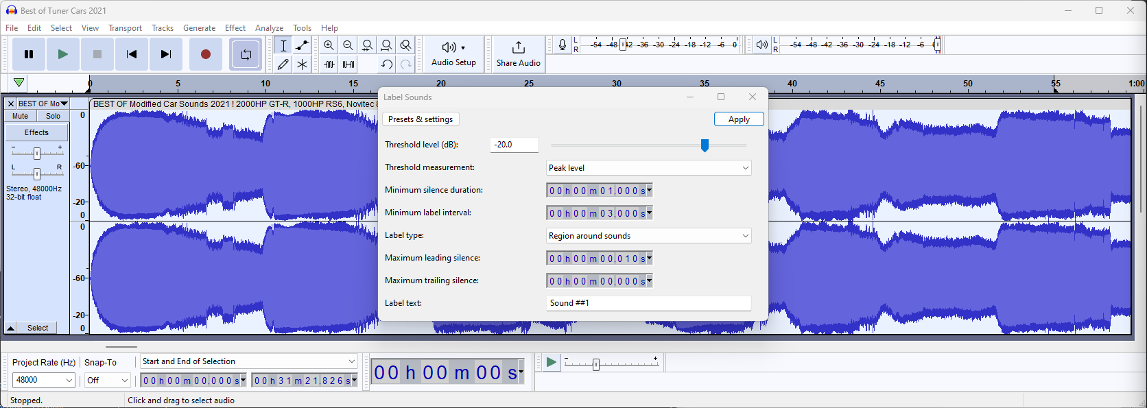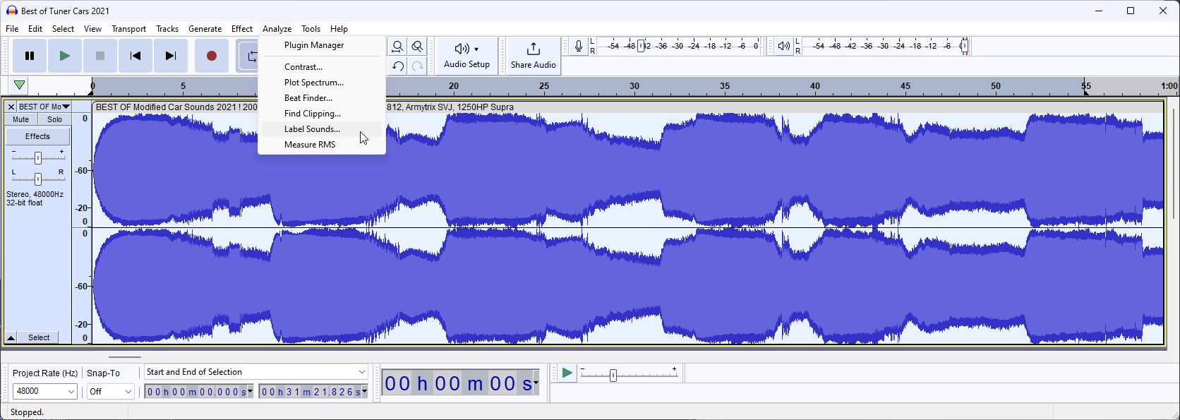 Now we know this, press CTRL+A to select the track and open "Label Sounds" by going to Analyze -> Label Sounds