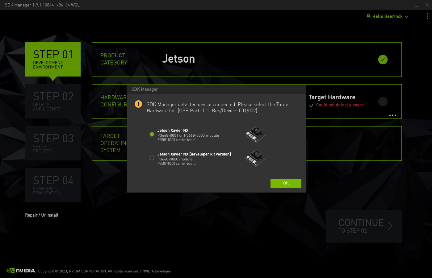 Luckily for us, Nvidia released version 1.9.1 of their SDK Manager which promises to add "WSL Support", offering a solution that could work on our Windows machine! So, let's try it out!!