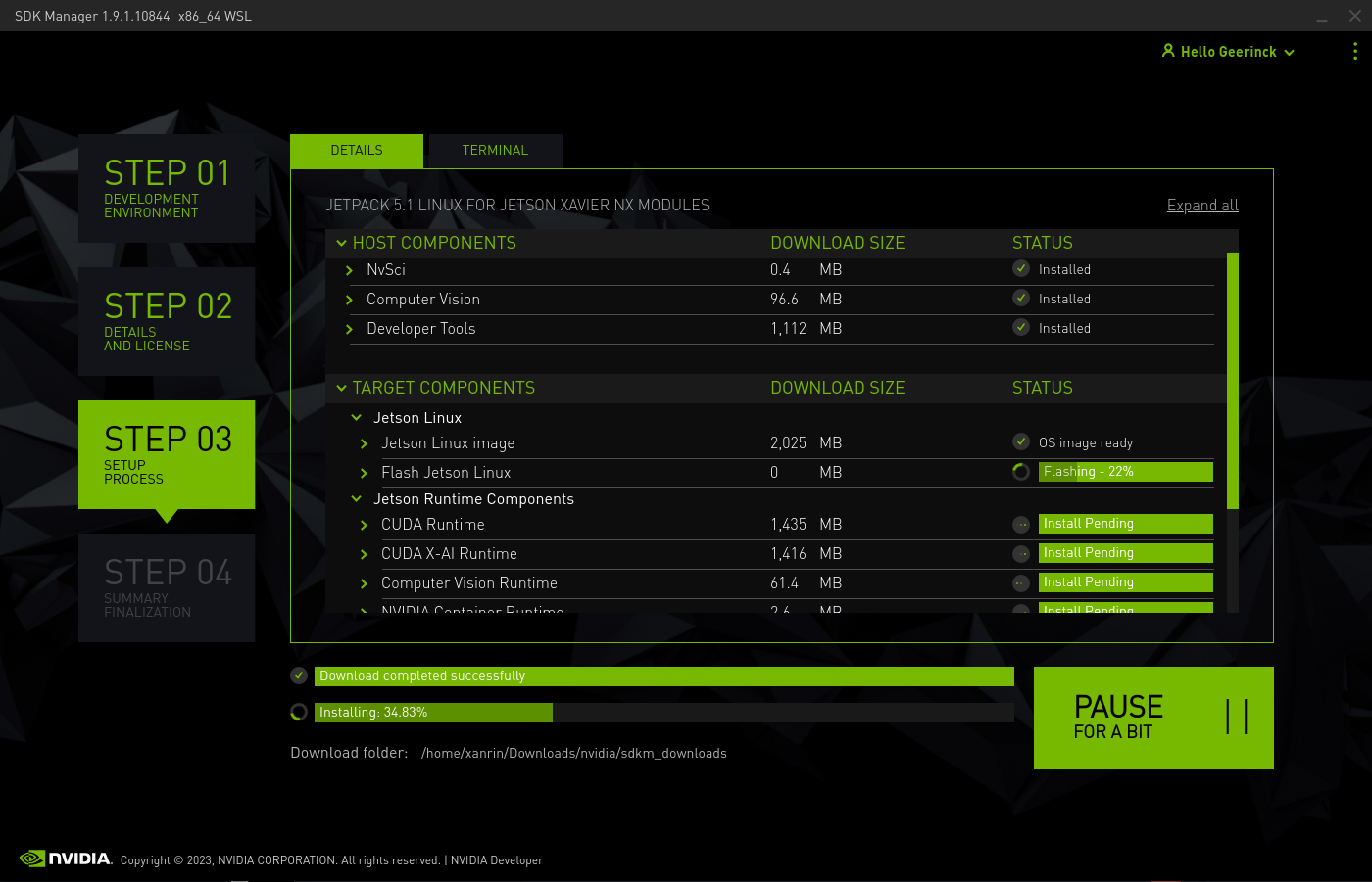 - [WSL] Install NVIDIA SDK Manager and ensure